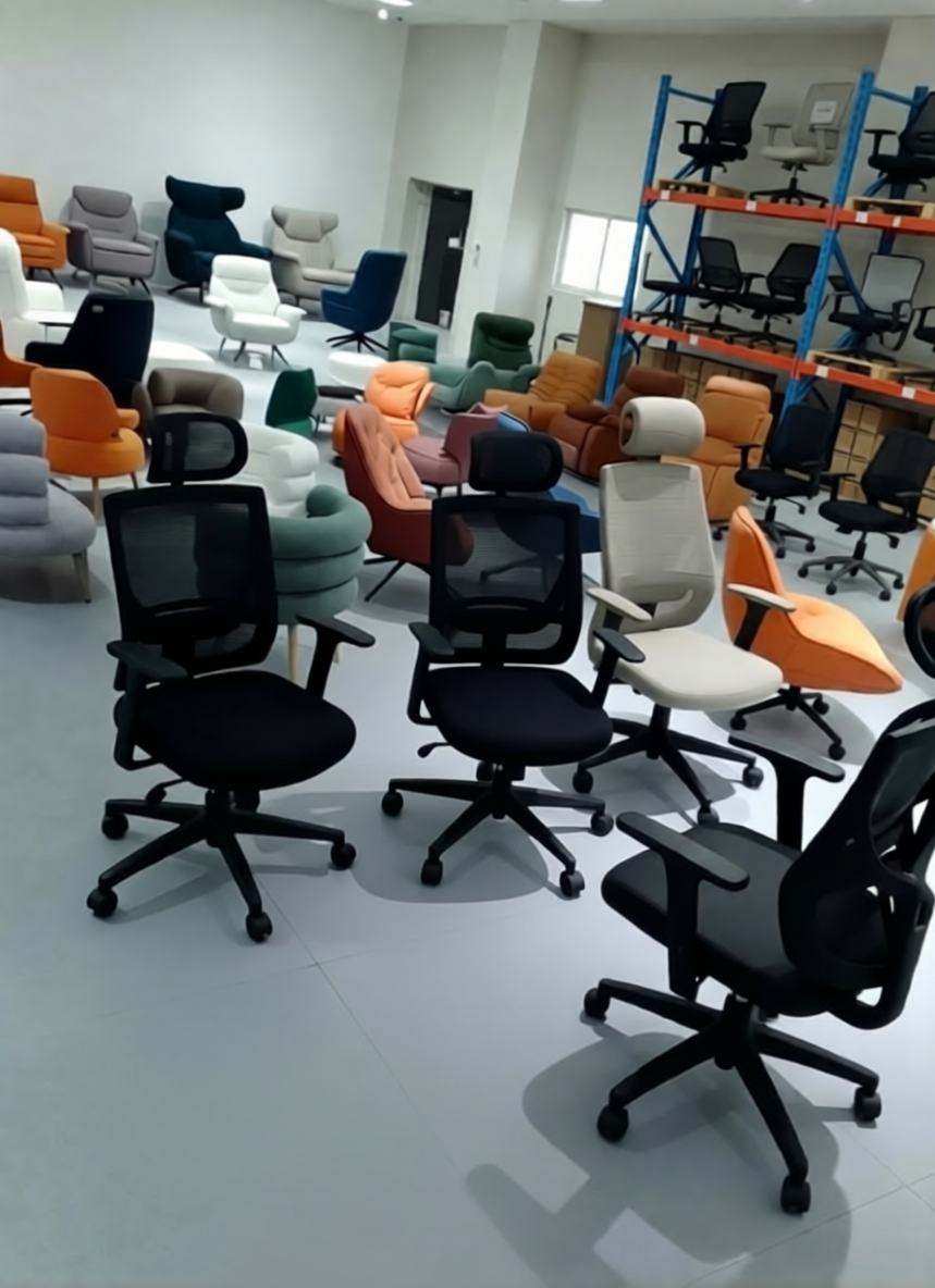 We are a furniture factory located in Hebei, China, with a 20,000-square-meter factory, 18 years of production experience, 3 domestic independent brands, annual sales exceeding 30 million US dollars, a complete production system and a complete upstream and downstream material supply chain. We independently develop and produce more than 150 styles (including plastic furniture, office furniture, and leisure sofas), and 125 styles for export and OEM. We are an integrated manufacturing and trading company.